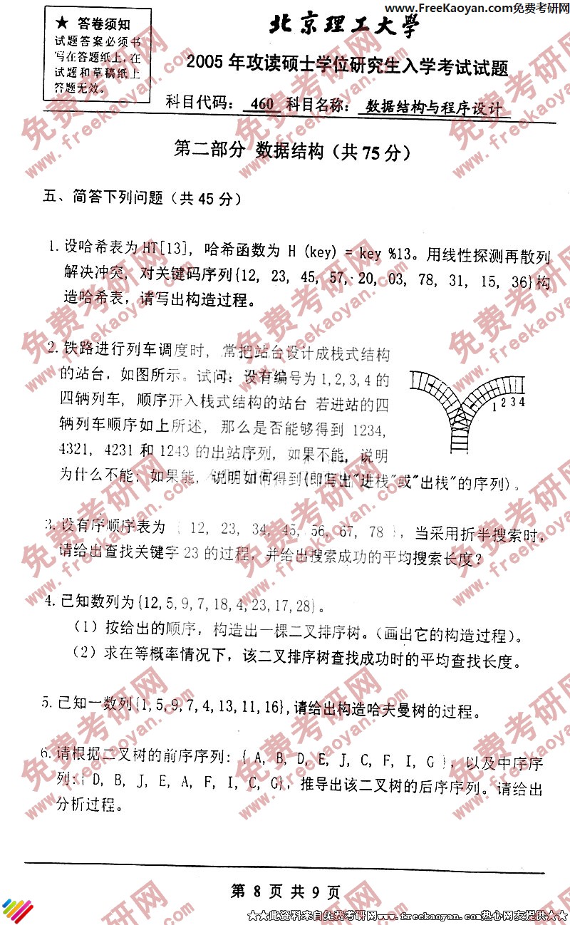 专业课考研经验 本站小编 FreeKaoyan 2018-01-22北京理工大学2005年考研真题-计算机技术基础(含计算机组成原理、操作系统和数据结构)