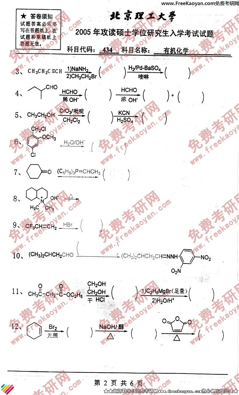 北京理工大学2005年考研真题-有机化学(2)