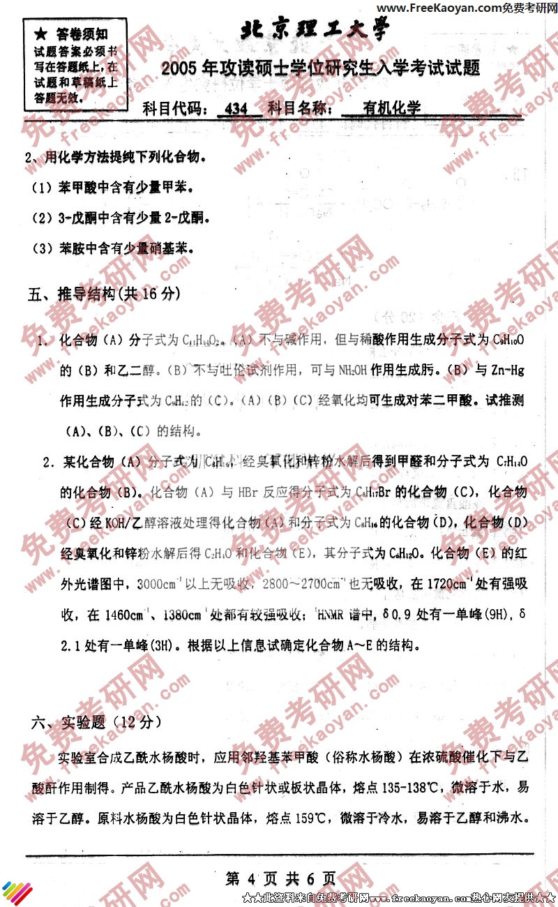 北京理工大学2005年考研真题-有机化学(4)
