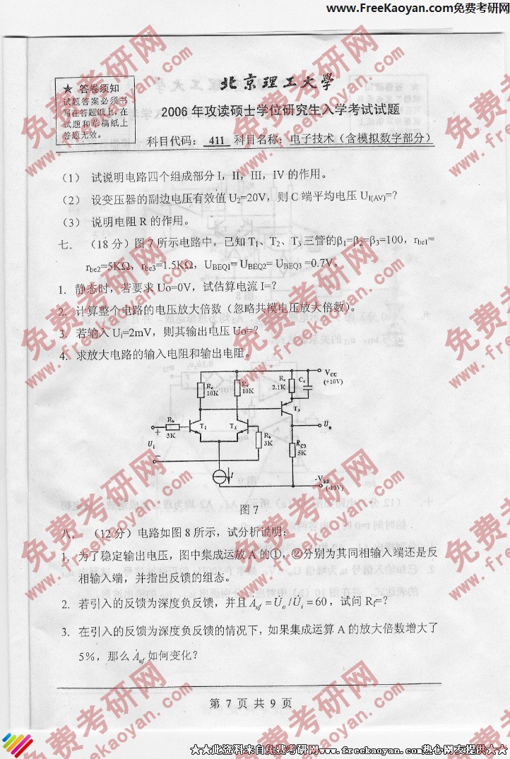 专业课考研经验 本站小编 FreeKaoyan 2018-01-22北京理工大学2005年考研真题-电子力学(含模拟、数字部分)