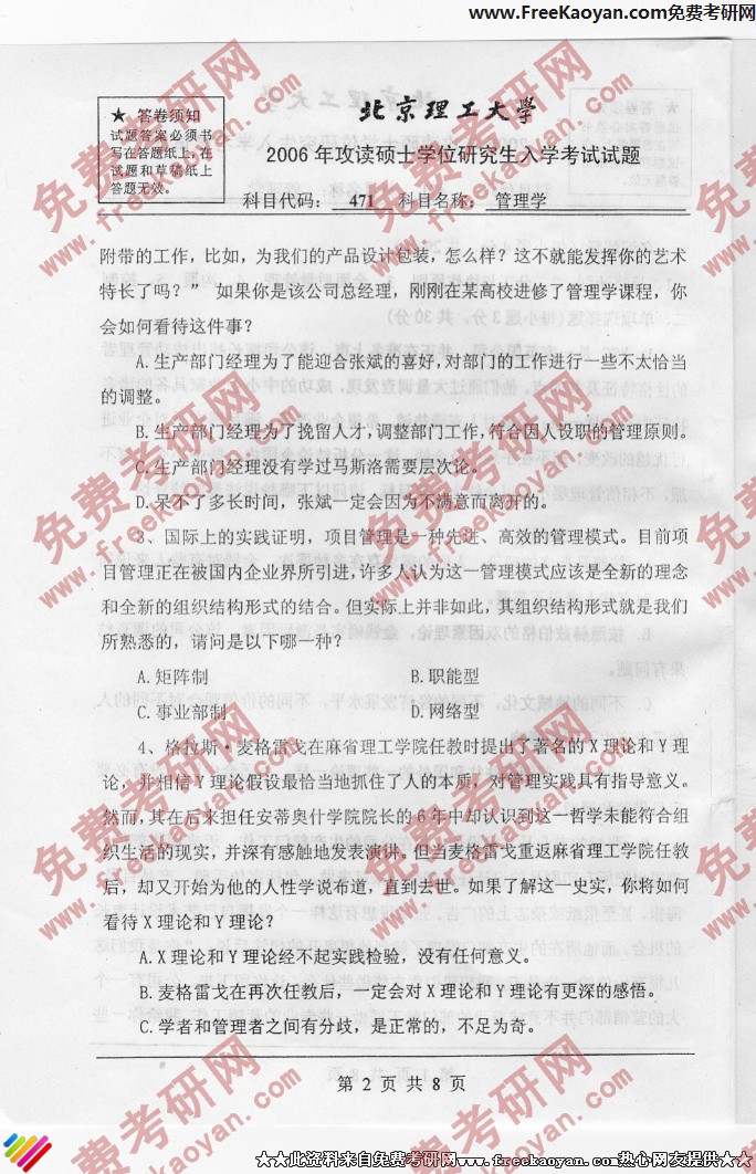 专业课考研经验 本站小编 FreeKaoyan 2018-01-22北京理工大学2005年考研真题-管理学基础