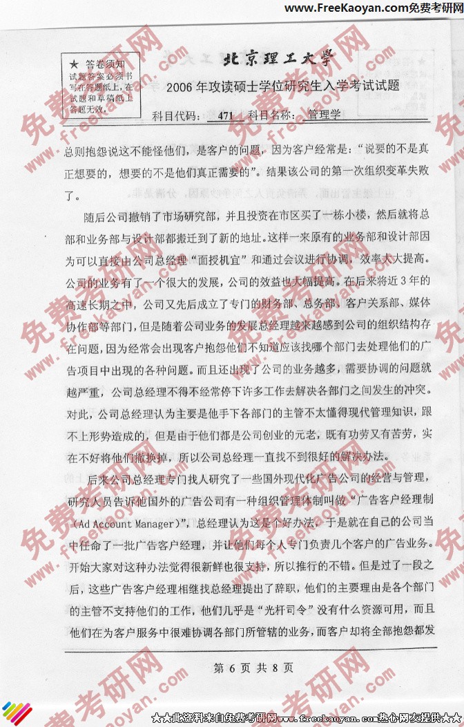 专业课考研经验 本站小编 FreeKaoyan 2018-01-22北京理工大学2005年考研真题-管理学基础