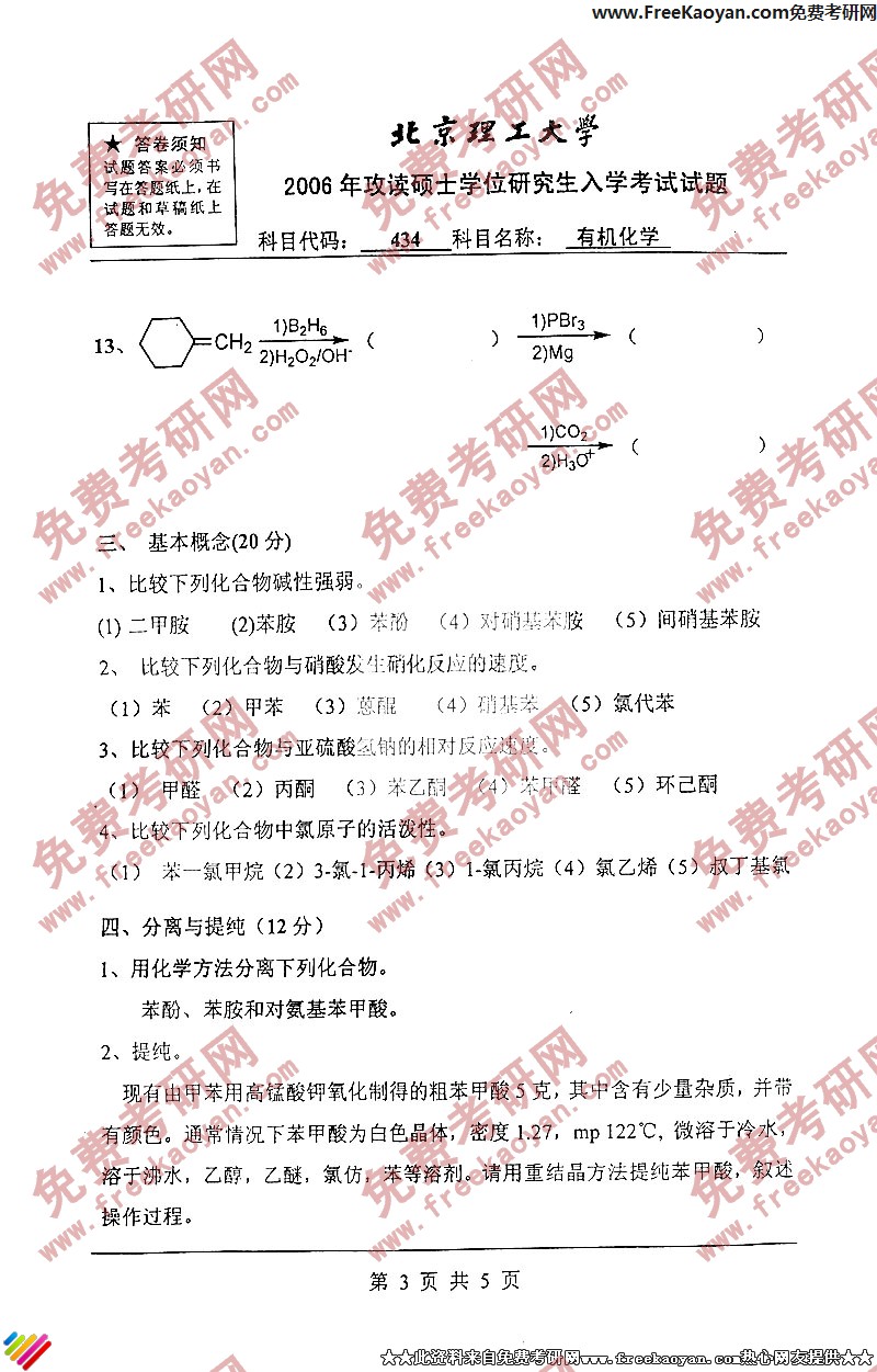 专业课考研经验 本站小编 FreeKaoyan 2018-01-22北京理工大学2005年考研真题-有机化学