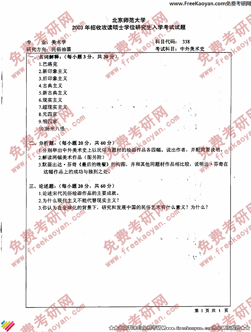 专业课考研经验 本站小编 FreeKaoyan 2018-01-22北京师范大学2003考研真题-社会学[民俗学]