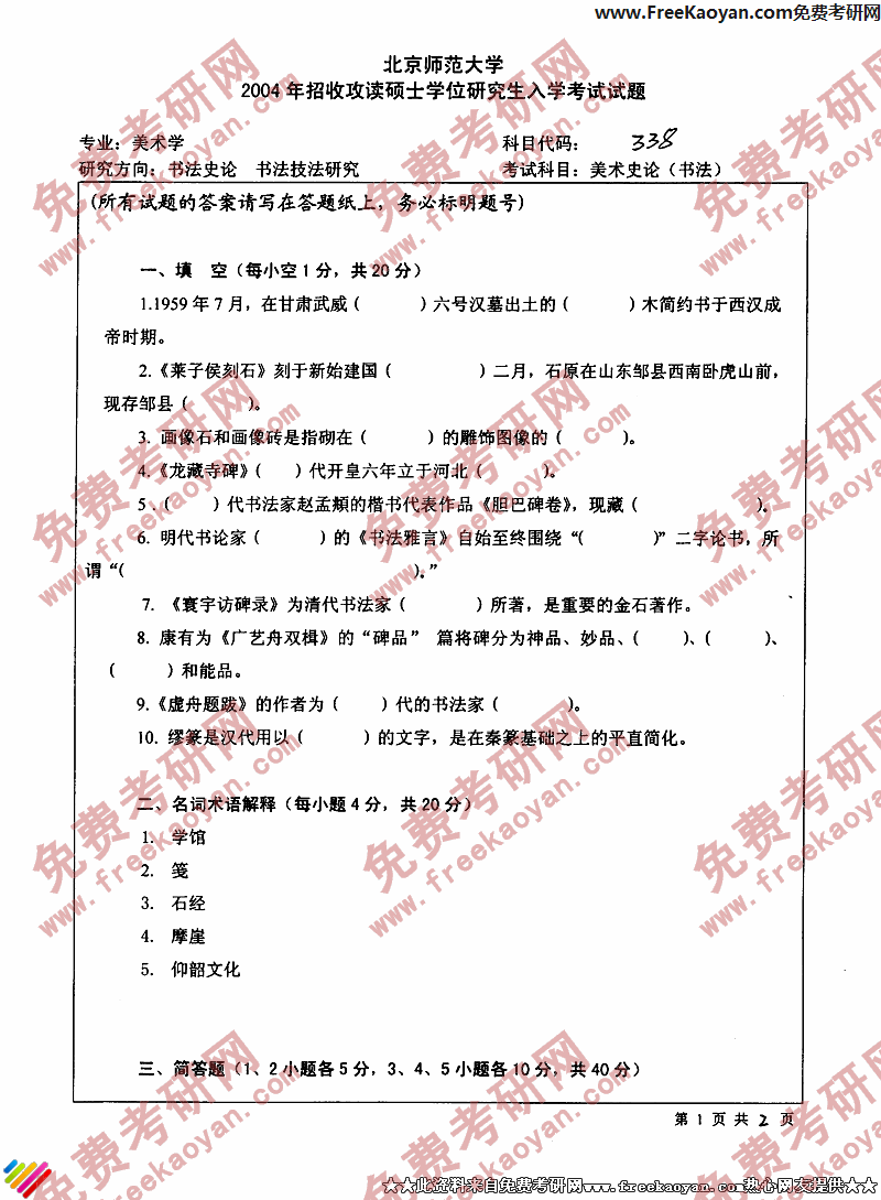 专业课考研经验 本站小编 FreeKaoyan 2018-01-22北京师范大学2004考研真题-美术史论