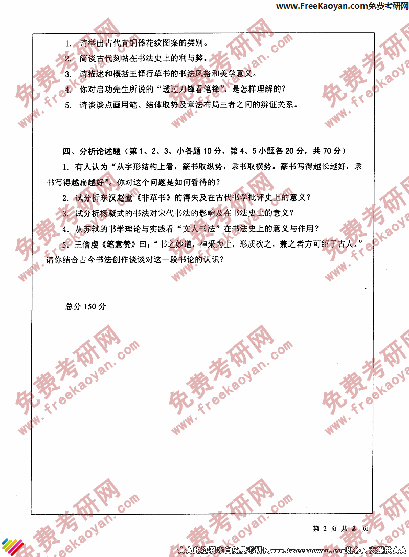 北京师范大学2004考研真题-美术史论(书法)(2)