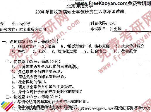 专业课考研经验 本站小编 FreeKaoyan 2018-01-22北京师范大学2003考研真题-社会学[民俗学]
