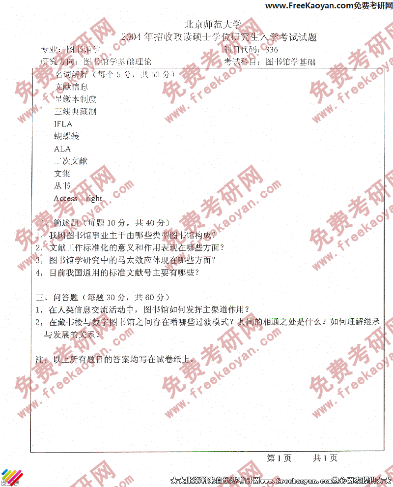 相关话题/考研真题 北京师范大学 基础 图书馆学