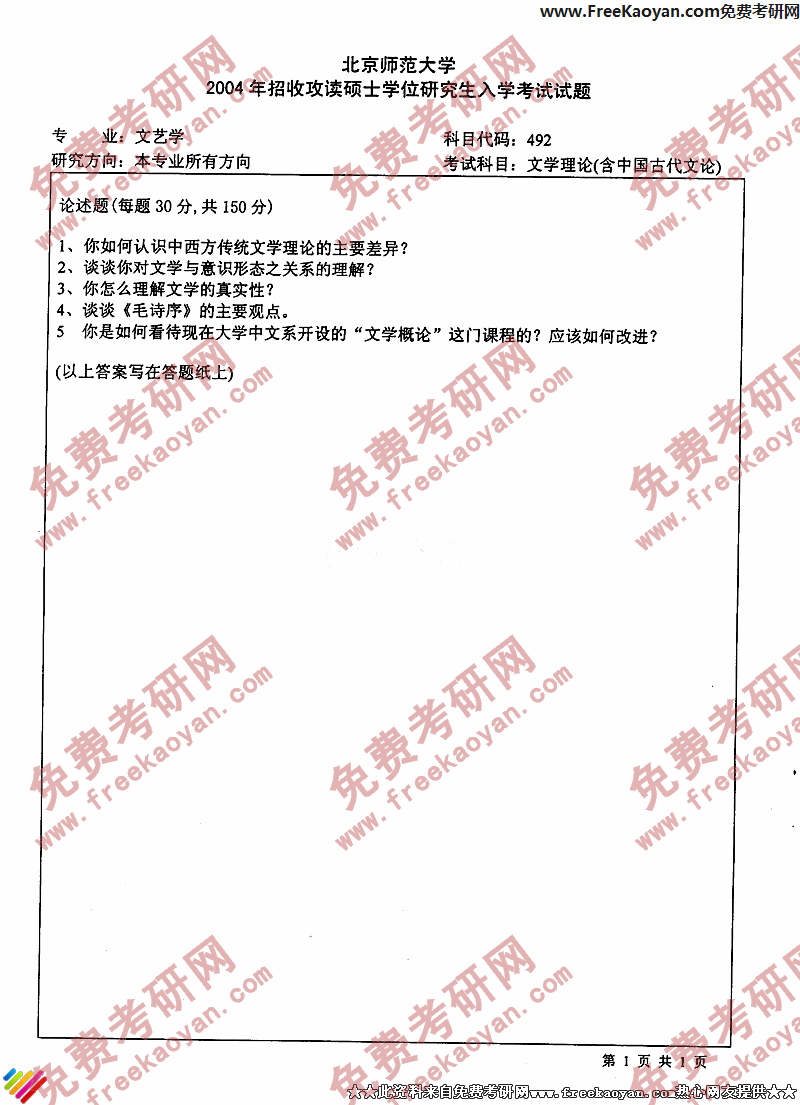 专业课考研经验 本站小编 FreeKaoyan 2018-01-22北京师范大学2004考研真题-美术史论