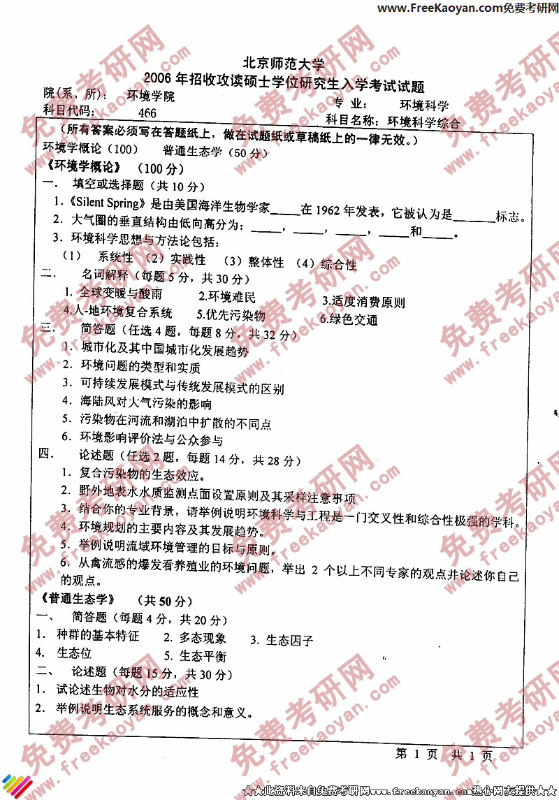 相关话题/考研真题 北京师范大学 综合 环境科学