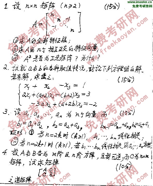 • 北京邮电大学1998年考研真题-高等代数