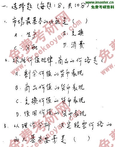 专业课考研经验 本站小编 FreeKaoyan 2018-01-22北京邮电大学1998年考研真题-经济管理学院