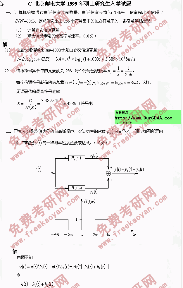 专业课考研经验 本站小编 FreeKaoyan 2018-01-22北京邮电大学1998年考研真题-通信原理