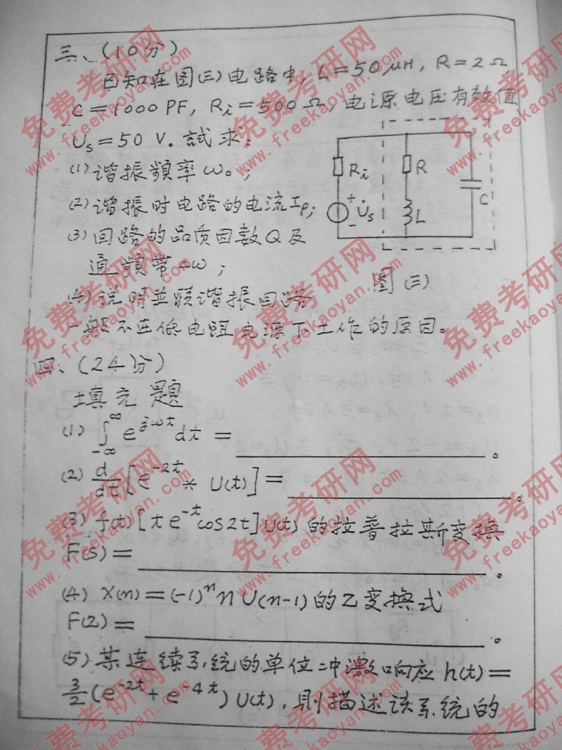 相关话题/考研真题 北京邮电大学 信号与系统 电路