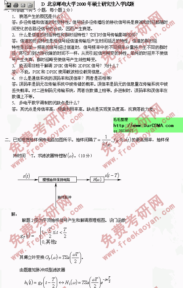 北京邮电大学2000年考研真题-通信原理