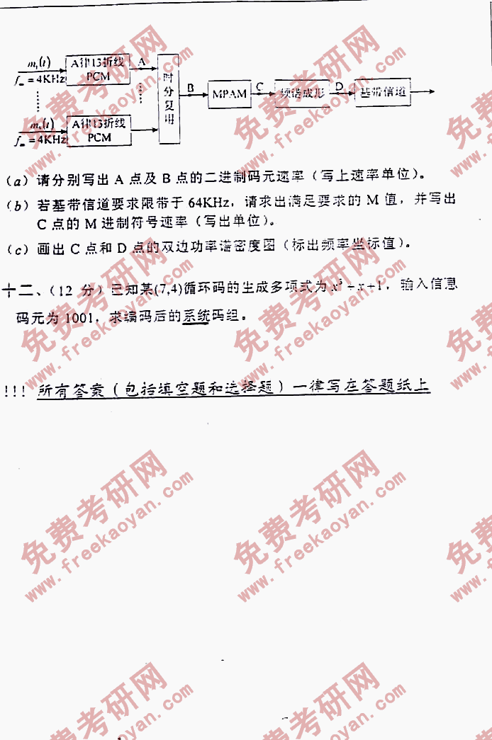 专业课考研经验 本站小编 FreeKaoyan 2018-01-22北京邮电大学2000年考研真题-通信原理