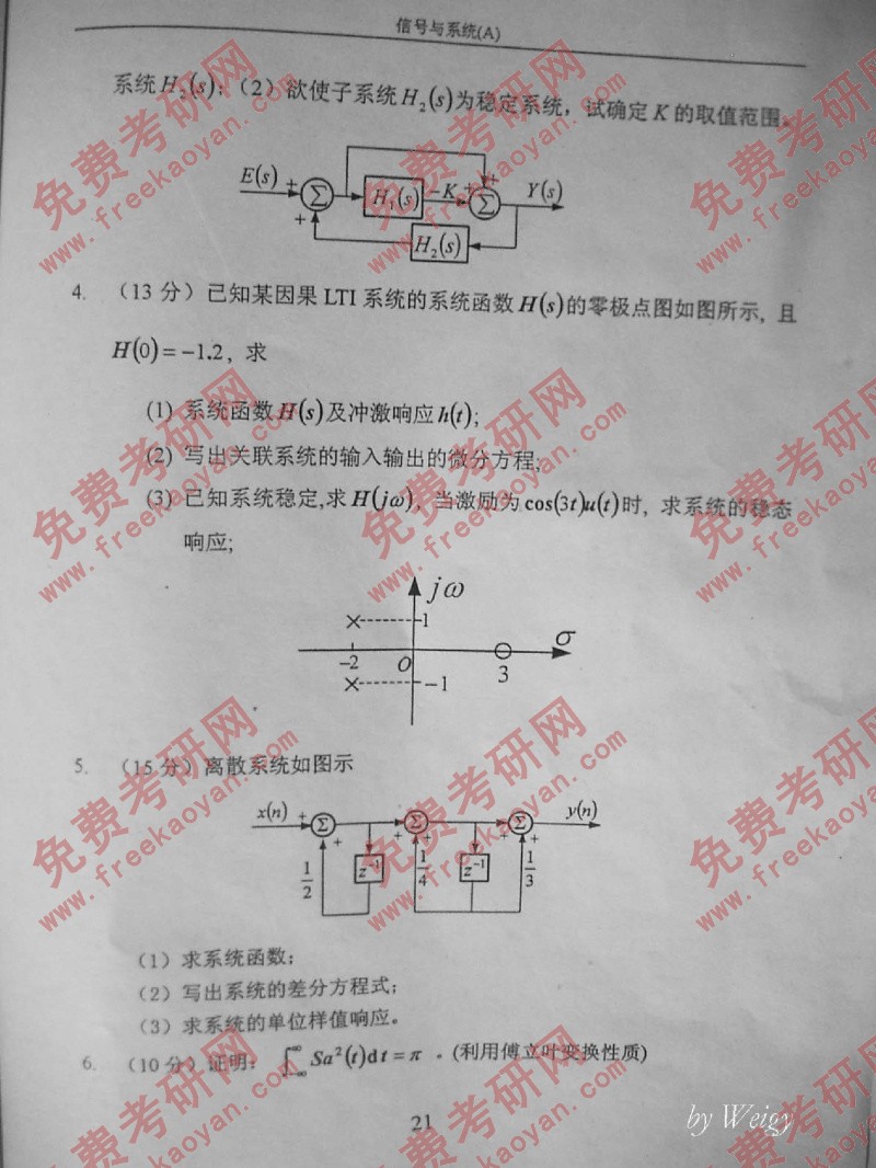 相关话题/北京邮电大学 考研真题 信号与系统
