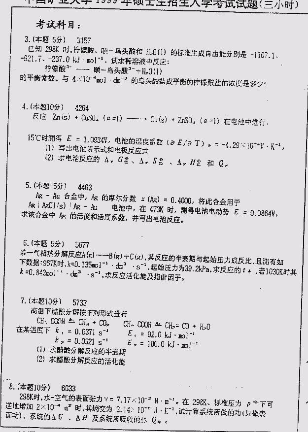 相关话题/中国矿业大学 考研真题 物理化学