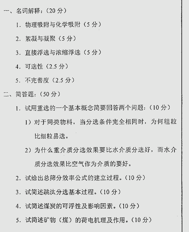 专业课考研经验 本站小编 FreeKaoyan 2018-01-22中国矿业大学1999年考研真题-选矿学