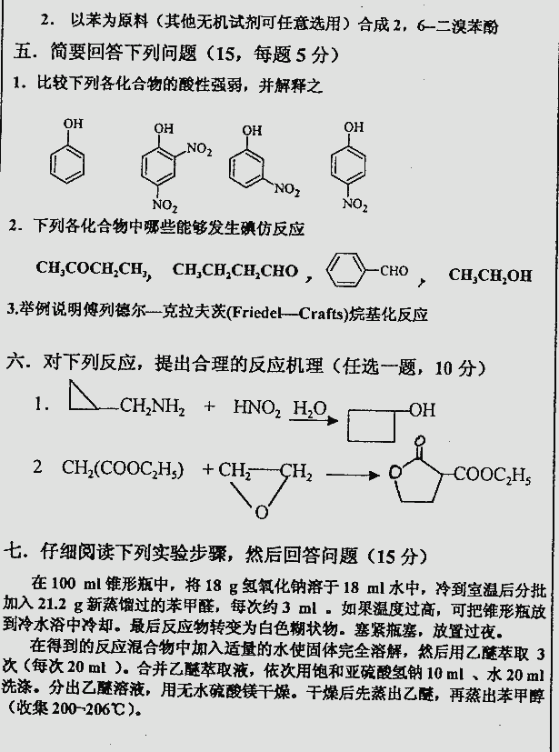 相关话题/中国矿业大学 考研真题 有机化学