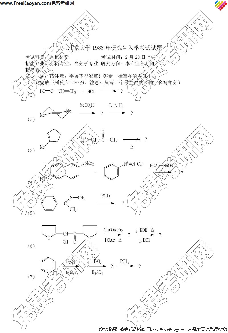 专业课考研经验 本站小编 FreeKaoyan 2018-01-22北京大学1985年考研真题-有机化学