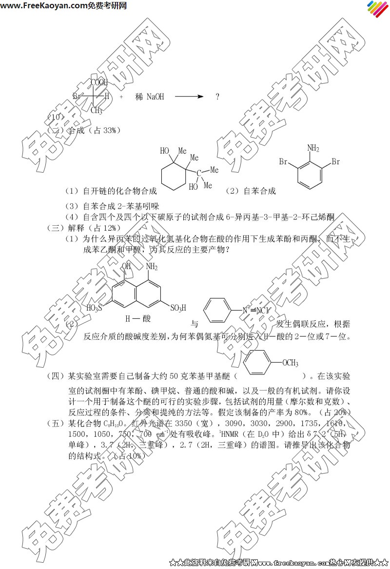 专业课考研经验 本站小编 FreeKaoyan 2018-01-22中国矿业大学2000年考研真题-有机化学