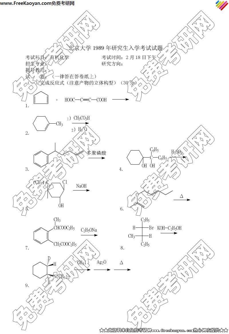 专业课考研经验 本站小编 FreeKaoyan 2018-01-22北京大学1987年考研真题-有机化学
