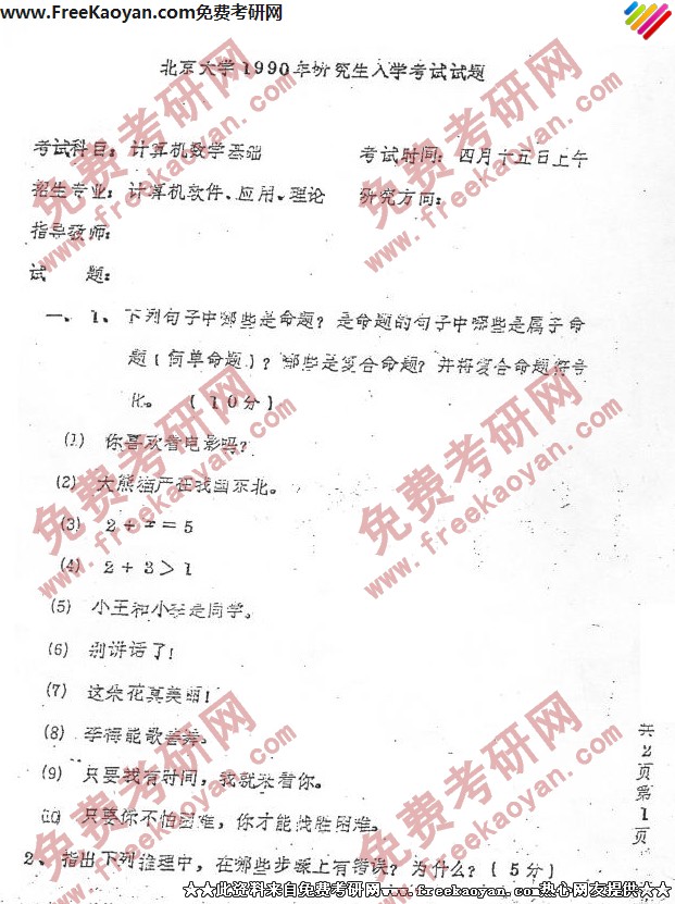 北京大学1990年考研真题-计算机数学基础