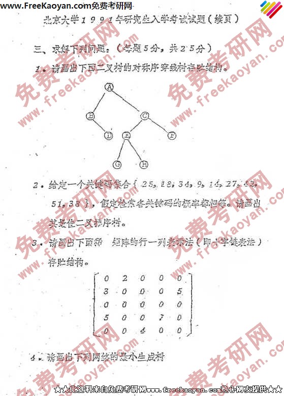 专业课考研经验 本站小编 FreeKaoyan 2018-01-22北京大学1990年考研真题-数据结构