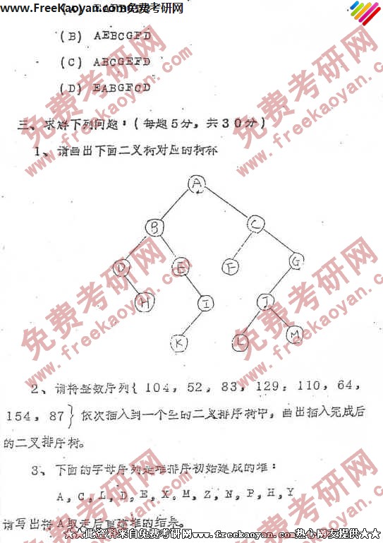 北京大学1992年考研真题-数据结构(3)
