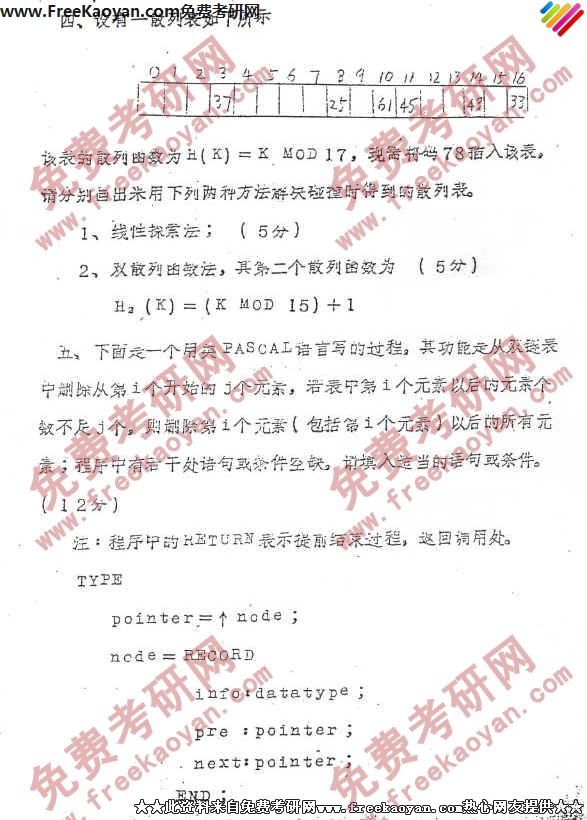 专业课考研经验 本站小编 FreeKaoyan 2018-01-22北京大学1990年考研真题-数据结构