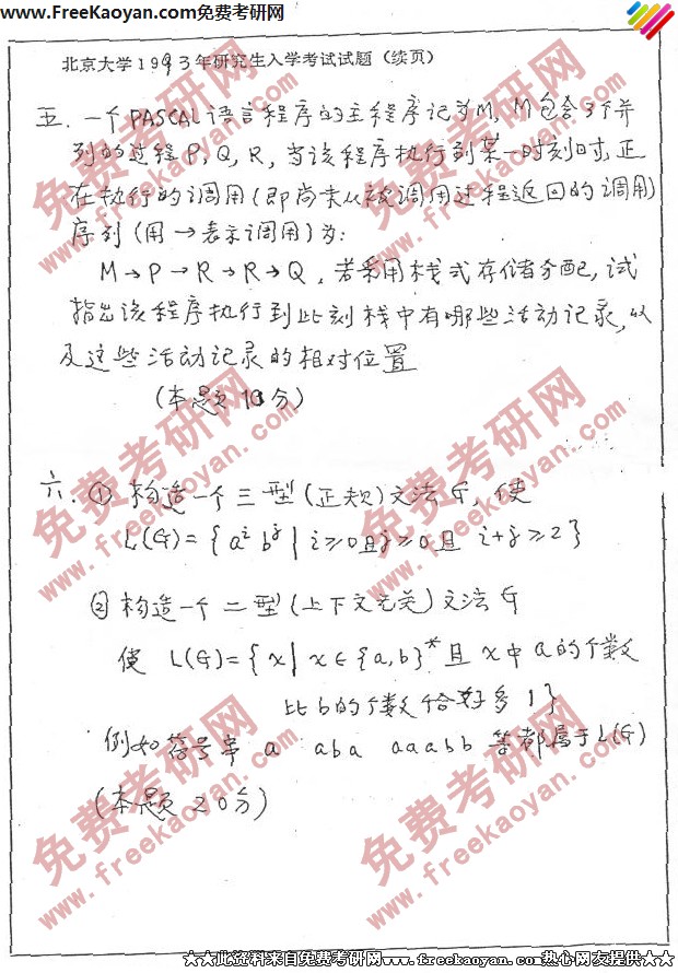 专业课考研经验 本站小编 FreeKaoyan 2018-01-22北京大学1990年考研真题-计算机数学基础
