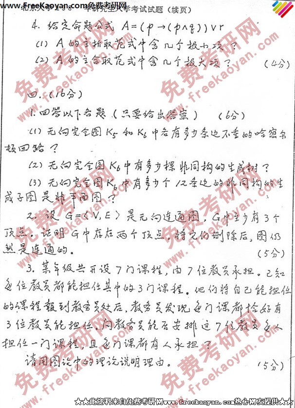 专业课考研经验 本站小编 FreeKaoyan 2018-01-22北京大学1990年考研真题-计算机数学基础