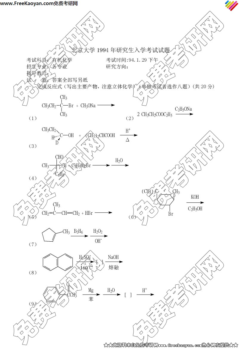 专业课考研经验 本站小编 FreeKaoyan 2018-01-22北京大学1991年考研真题-有机化学