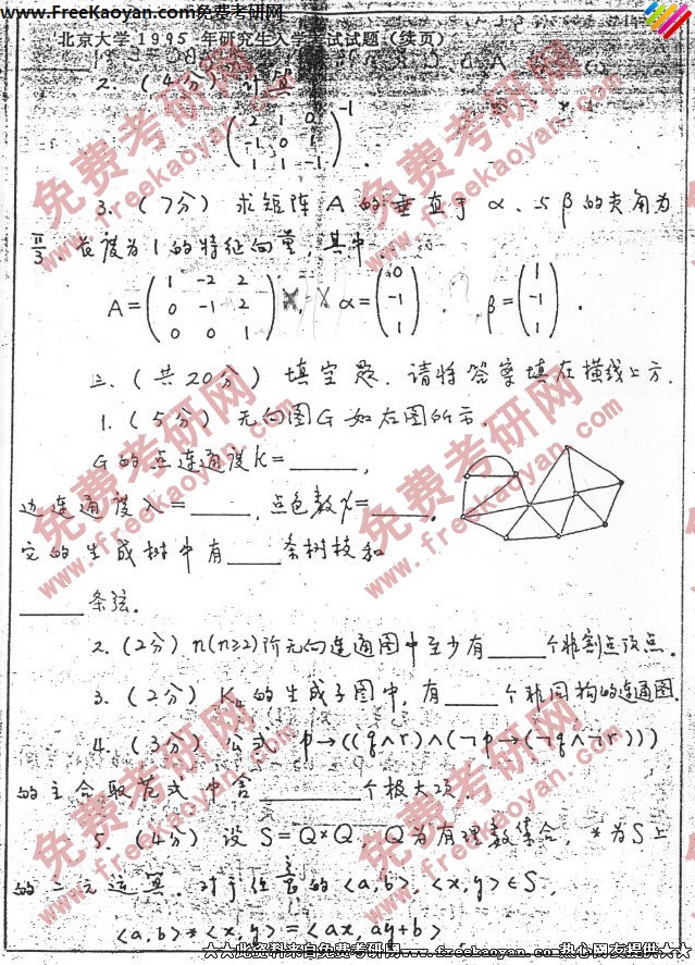 北京大学1995年考研真题-计算机数学基础(3)