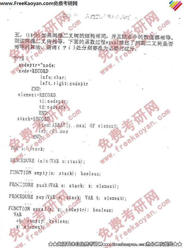 专业课考研经验 本站小编 FreeKaoyan 2018-01-22北京大学1994年考研真题-数据结构