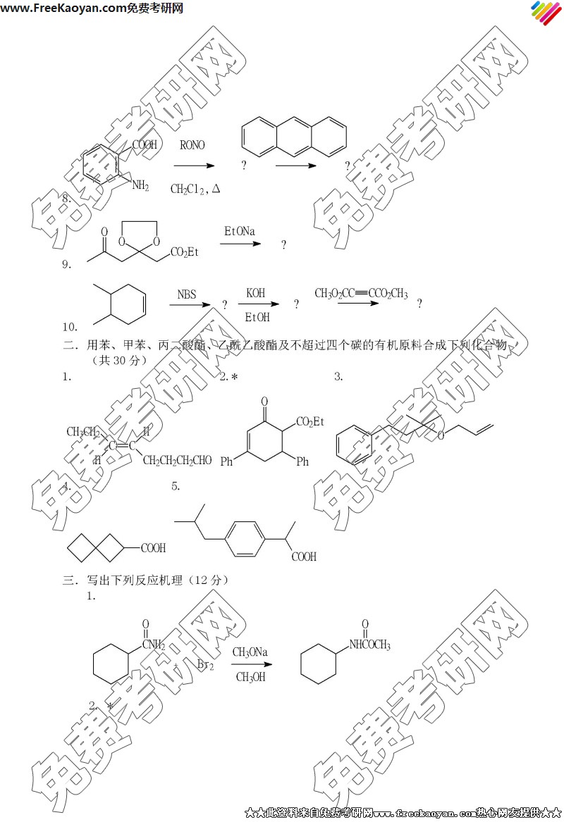 专业课考研经验 本站小编 FreeKaoyan 2018-01-22北京大学1991年考研真题-有机化学