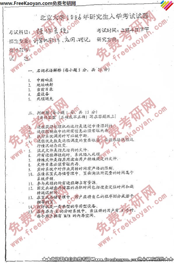 专业课考研经验 本站小编 FreeKaoyan 2018-01-22北京大学1994年考研真题-操作系统