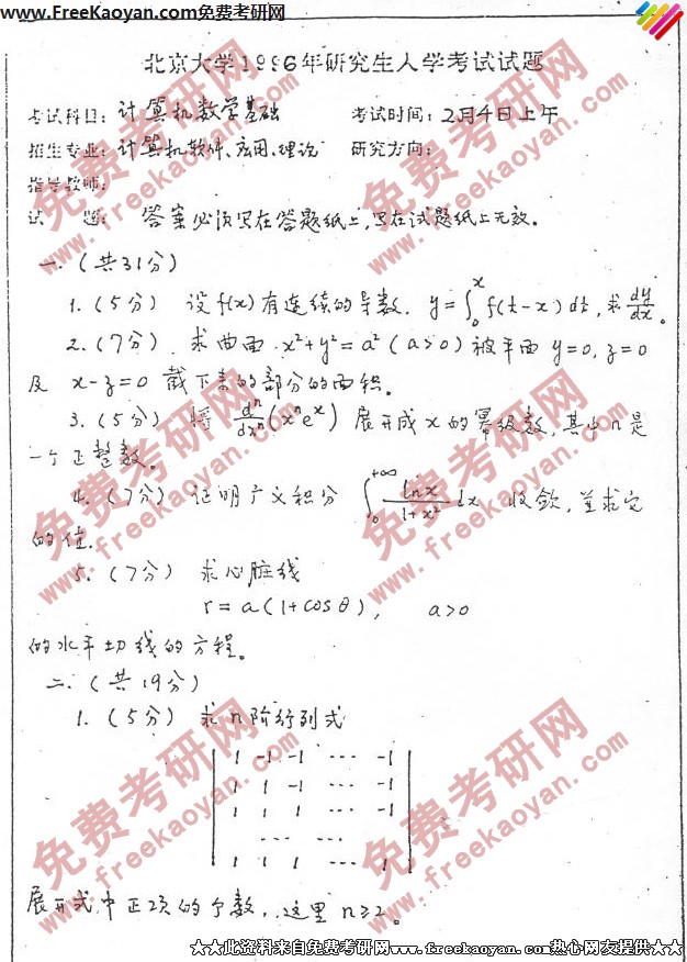 专业课考研经验 本站小编 FreeKaoyan 2018-01-22北京大学1993年考研真题-计算机数学基础