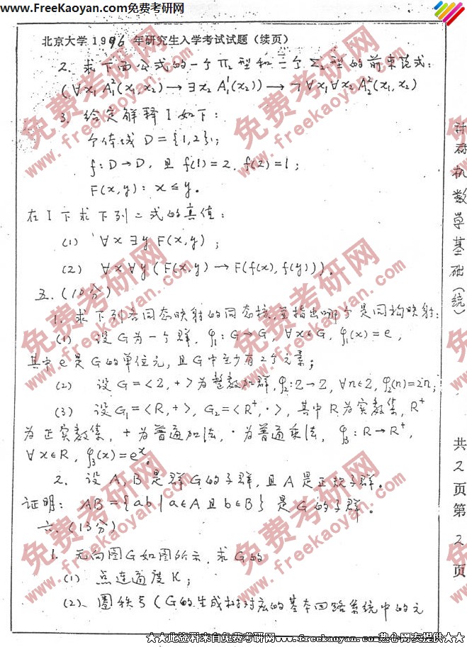 专业课考研经验 本站小编 FreeKaoyan 2018-01-22北京大学1995年考研真题-计算机数学基础
