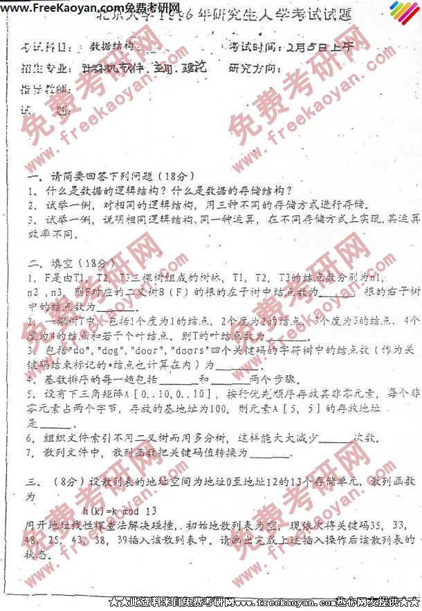 专业课考研经验 本站小编 FreeKaoyan 2018-01-22北京大学1995年考研真题-数据结构