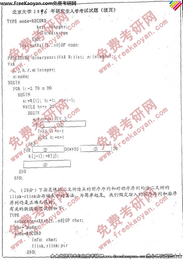 专业课考研经验 本站小编 FreeKaoyan 2018-01-22北京大学1995年考研真题-数据结构