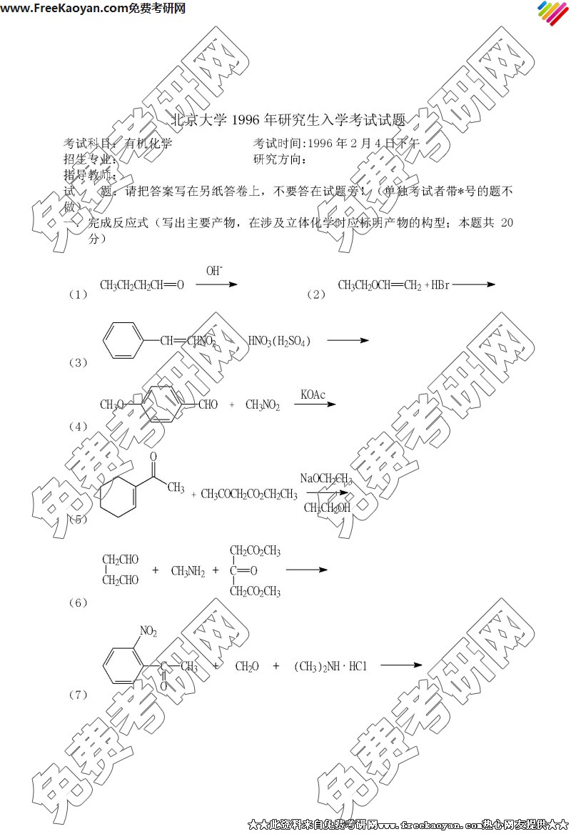 专业课考研经验 本站小编 FreeKaoyan 2018-01-22北京大学1995年考研真题-有机化学