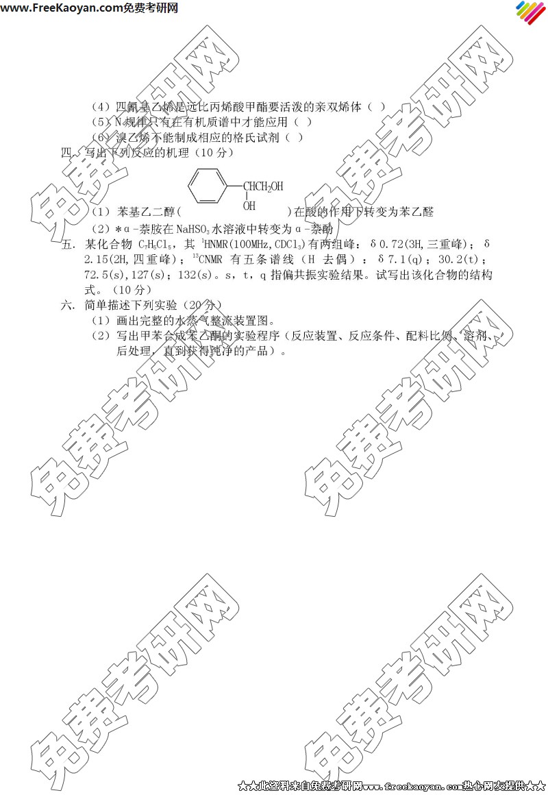 专业课考研经验 本站小编 FreeKaoyan 2018-01-22北京大学1994年考研真题-有机化学