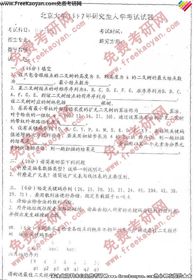 专业课考研经验 本站小编 FreeKaoyan 2018-01-22北京大学1994年考研真题-数据结构
