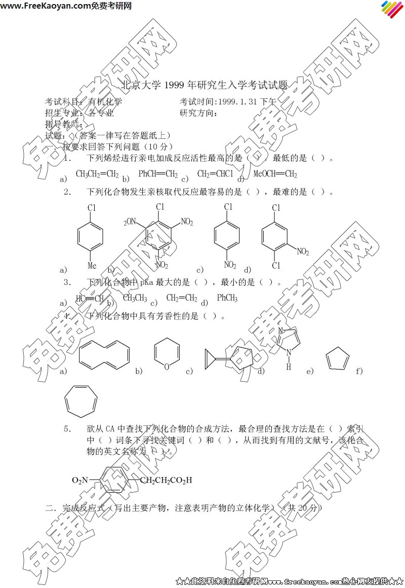 专业课考研经验 本站小编 FreeKaoyan 2018-01-22北京大学1997年考研真题-有机化学
