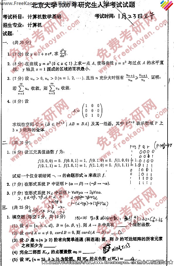 相关话题/考研真题 北京大学 计算机 基础 数学