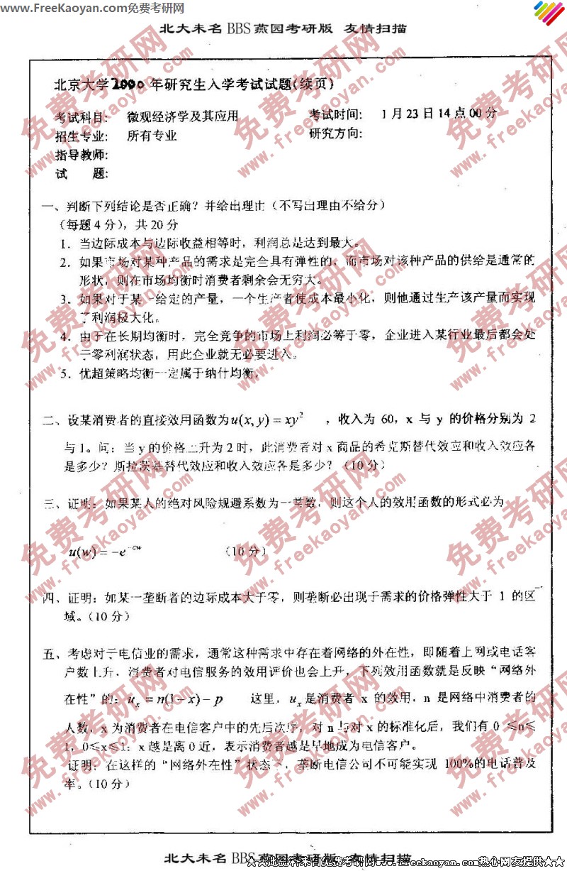 专业课考研经验 本站小编 FreeKaoyan 2018-01-22北京大学1996-2001年考研真题-经济中心微观考题答案