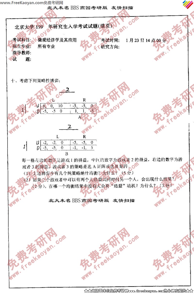 专业课考研经验 本站小编 FreeKaoyan 2018-01-22北京大学1996-2001年考研真题-经济中心微观考题答案