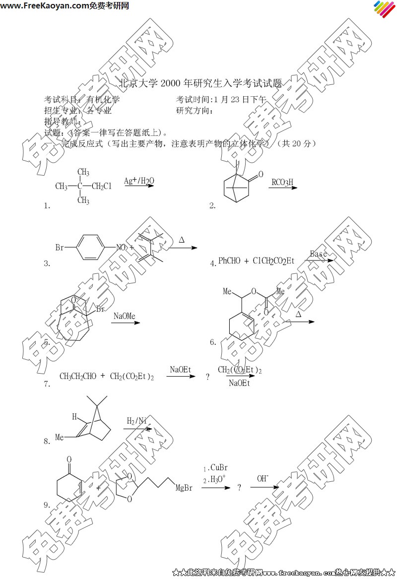 北京大学2000年考研真题-有机化学